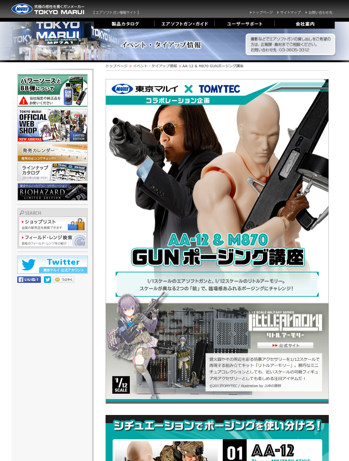 1/1スケールのエアソフトガンを展開する「東京マルイ」様と、1/12スケールの銃火器プラキット「リトルアーモリー」のWEBコラボレーション企画が、東京マルイ様のホームページに掲載中です。