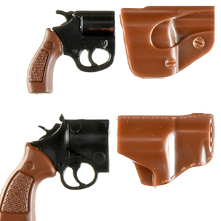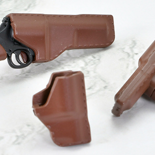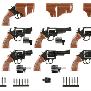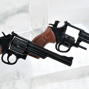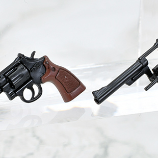 M19コンバット・マグナムとM36チーフスペシャルをサイズ・形態別に細かく再現した10挺セットです。シリンダーはスイングアウト選択、ハンマー起倒状態の再現。ホルスターとそのバンドも付属します。かつてのアメリカンポリスを象徴するリボルバー2種を1/12スケールでお楽しみください。
