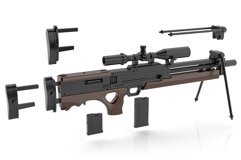 タイト設計の手動式スナイパーライフル並みの精度と、セミオートマチックライフルならではの射速の併せ持つ、西ドイツ製の高性能・高級セミオート式狙撃銃です。ブルパップ方式の採用により、PSG-1と同等の銃身長ながら、全長が30cmもコンパクトな点も高い評価を得ています。