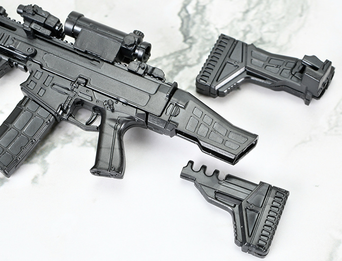 リトルアーモリー×Vtuber。ヨーロッパのタクティカル系Vtuber「Whiskey Project」とのコラボ製品が登場! 彼女が愛するチェコ製の次世代小銃“BREN2”を1/12スケールで精密再現しました。銃身バリエーションも豊富に用意し、好みのスタイルをお楽しみいただけます。また、銃本体に加え、話題の公式グッズ「Clay the Claymore」(M18クレイモアのぬいぐるみ)もミニチュア化。箱絵はアルマ01氏の描き下ろしイラストです!